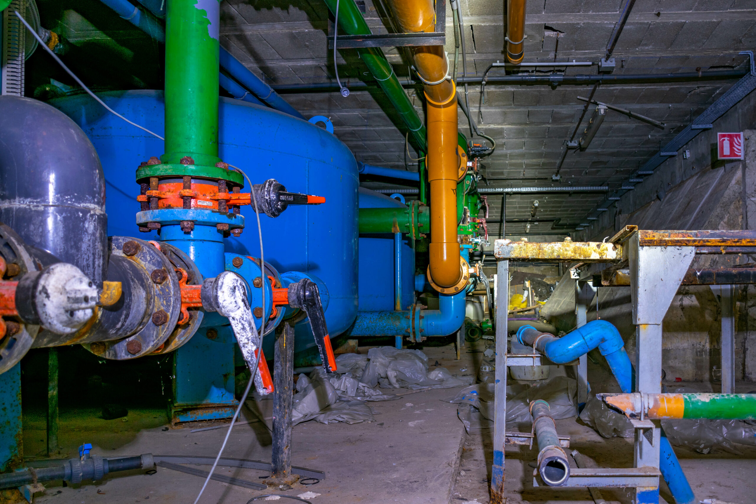 Le sous-sol de la piscine est lui aussi accessible. On y découvre encore une partie de la machinerie, avec ses tuyaux, ses pompes et ses installations techniques qui, autrefois, permettaient de faire vivre le bassin. En fouillant un peu, on retrouve également des vestiges inattendus. Mais aussi quelques accessoires liés à la plongée, sans doute utilisés pour les cours encadrés ou pour les activités de loisir proposées au public. Ce lieu, à l’atmosphère plus sombre et confinée, rappelle toute l’organisation invisible qui se cachait derrière le fonctionnement quotidien de la piscine.